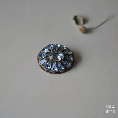 キラキラと透明度高く、みずみずしい輝きのペールブルーのグラスストーンブローチ。