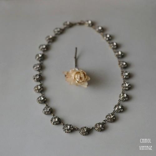 ラインストーンには少し曇りがかかっていますが、この年代のジュエリーにはよく見られる風合いです。