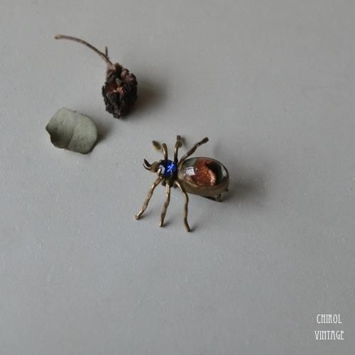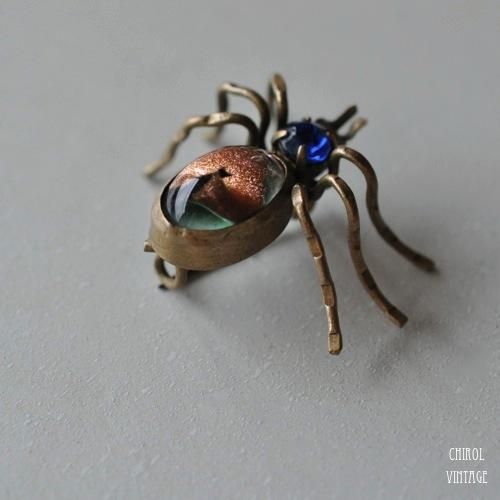 美しいアートグラスをまとった、コレクタブルなスパイダーのブローチ。