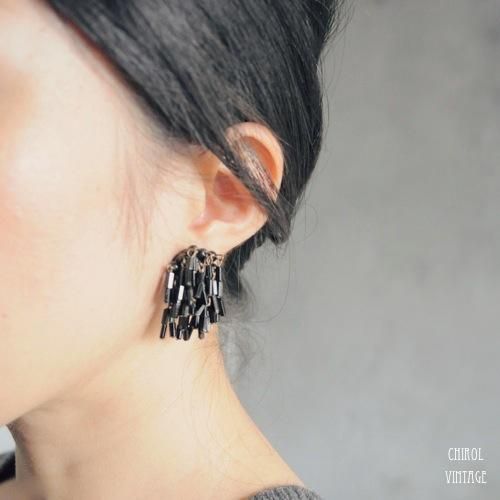 フレンチジェットストロービーズ タッセルイヤリング