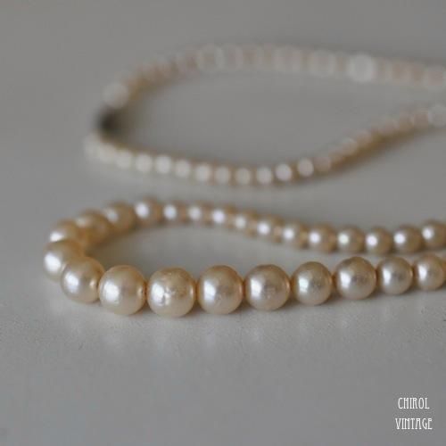 クラシックなグラスパールのネックレス。