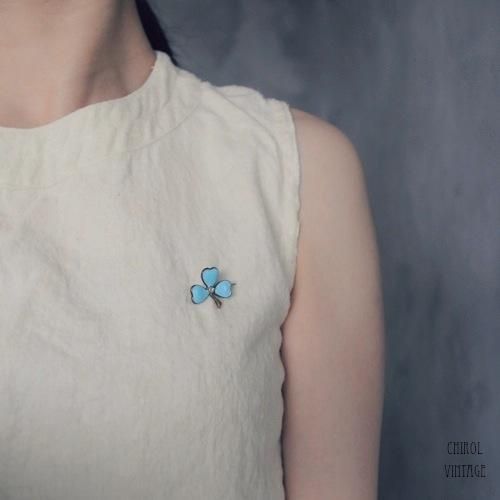明るいターコイズブルーがかわいい、小さなクローバーブローチ。