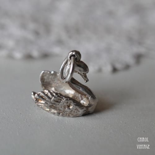 エレガントな佇まいが品のある、スワンのシヴィンテージシルバーチャーム。
