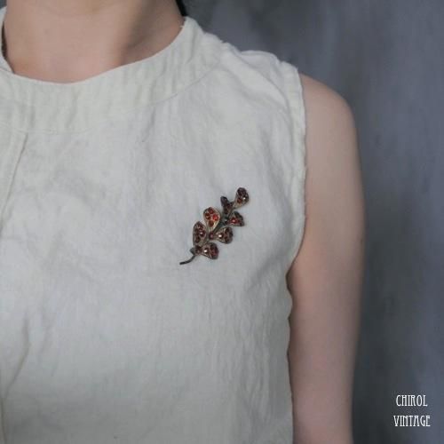 レッドラインストーン ゴールドリーフブローチ