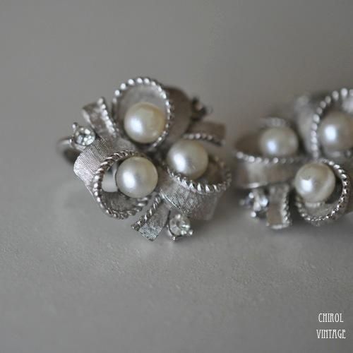 立体的に結ばれたリボンの間にはパールがセットされ、適度なボリュームのあるバランスの良いシェイプ。