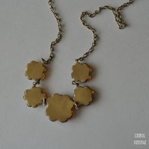チェコ オレンジミラーグラス クローバーネックレス