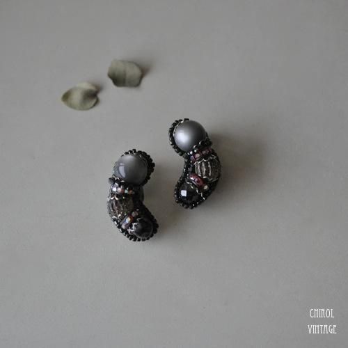 イヤーカフのように耳に添ったシェイプのメタルベースに、こんもりとビーズがセッティングされています。