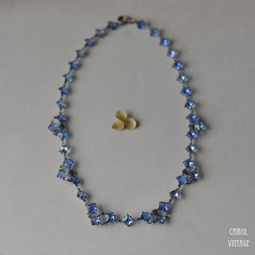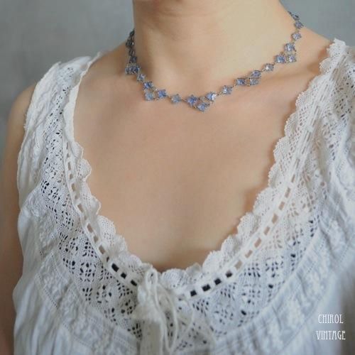 アールデコの繊細な雰囲気が美しい、ペールブルーグラスのオープンバックネックレス。