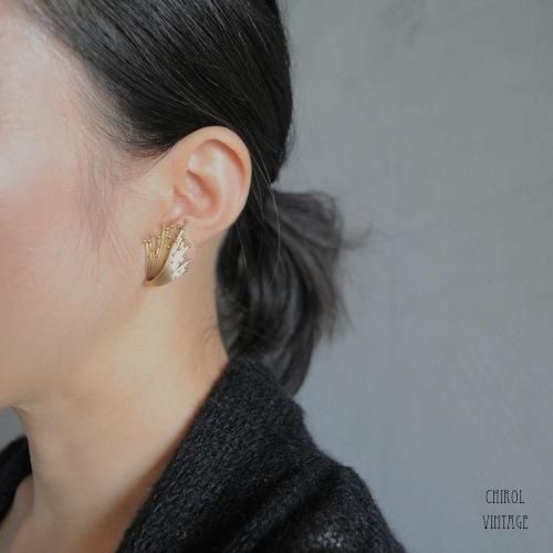 立体的でアブストラクトなモダニズムなモチーフが、オールゴールドでもデザイン性に優れた、センスあふれるイヤリングです。