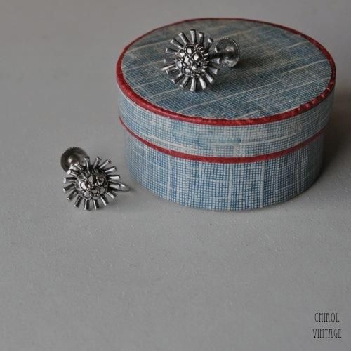 小さなデイジーがとってもかわいい、スターリングシルバーのスクリューイヤリング。