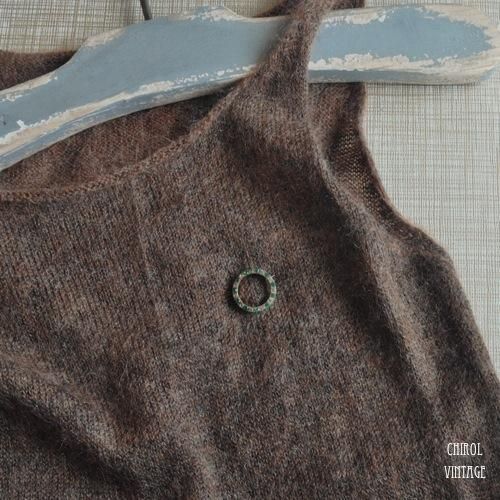クリアとエメラルドの小さなグラスが、エレガントなムードのアールデコサークルブローチ。