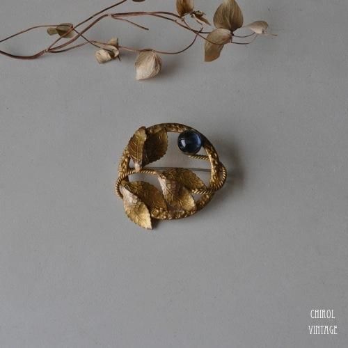 流れるようなリーフのモチーフが、アールヌーボーなデザインのゴールドサークルブローチ。