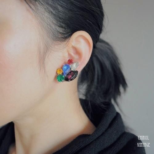 ヴィヴィッドなカラフルビジューが印象的なクリップイヤリング。
