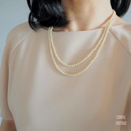 グラデュアルに並んだパールが多いダブルストランドのネックレスも、小粒のユニフォームなパールだと全く印象が違います。