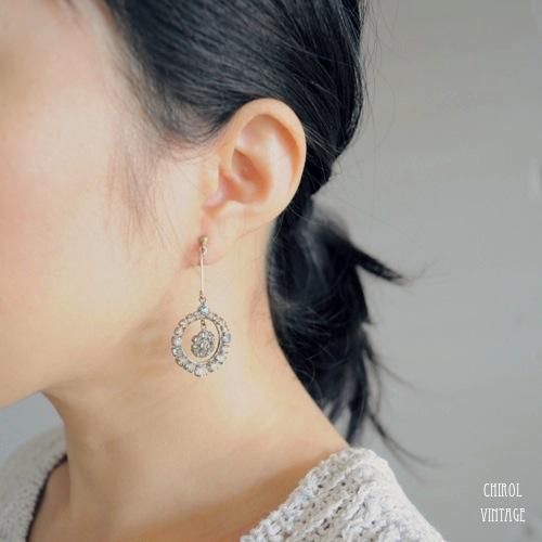 アールデコの古いタイプのアイリスグラスで、顔周りを品良く華やかに仕上げてくれるイヤリングです。