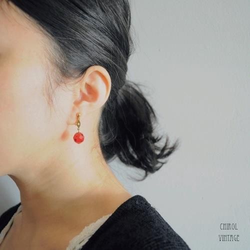 ゴールドのコネクターピースから控えめにドロップしたレッドビーズは、シャープなファセットが光を取り込み反射して、チラチラと可愛らしくスウィングします。