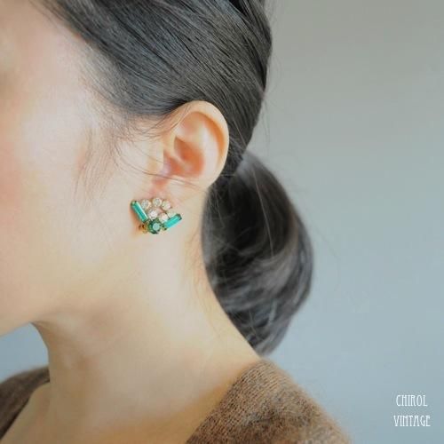 エメラルドxクリアビジュー ファンイヤリング