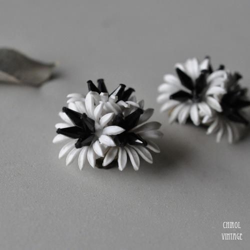 ブラックとホワイトのモノトーンがシックな、樹脂製のフラワークラスターイヤリング。