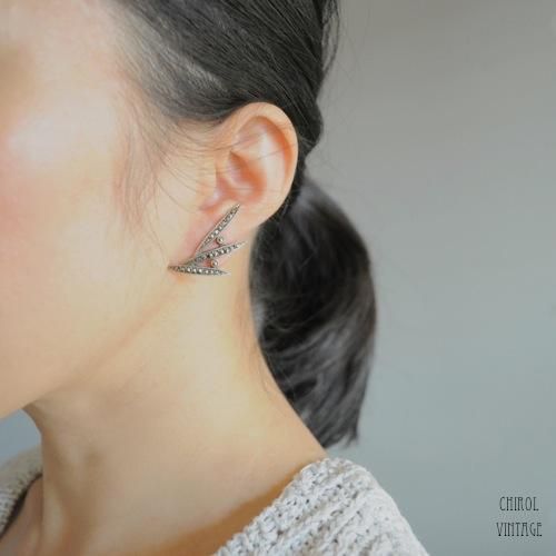 耳たぶを覆うような広がりのあるデザインがバランス良く、古さを感じさせないモードでスタイリッシュなイメージ。