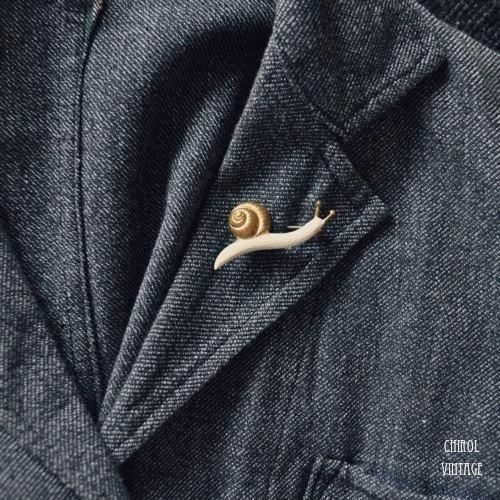 小ぶりなカタツムリがとってもかわいい、デコレティブなエナメルブローチ。