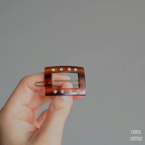 レトロな雰囲気がかわいい、セルロイド製のトータスシェルのヘアクリップ。