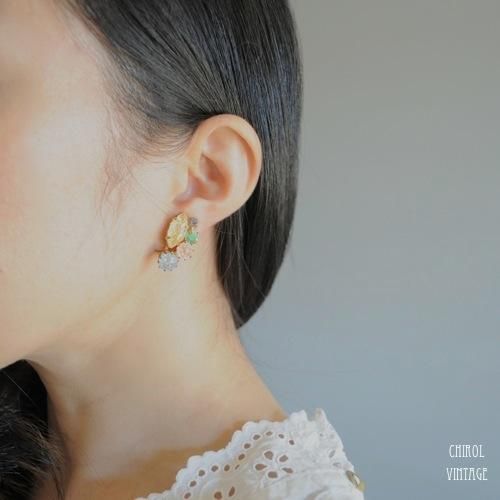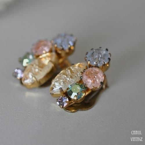ガーリーなパステルカラーがとってもかわいい、クラックルビーズのクリップイヤリング。
