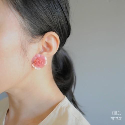 ピンクのスパンコールフラワーが、とびきりガーリーでレトロなクリップイヤリング。