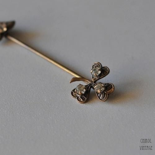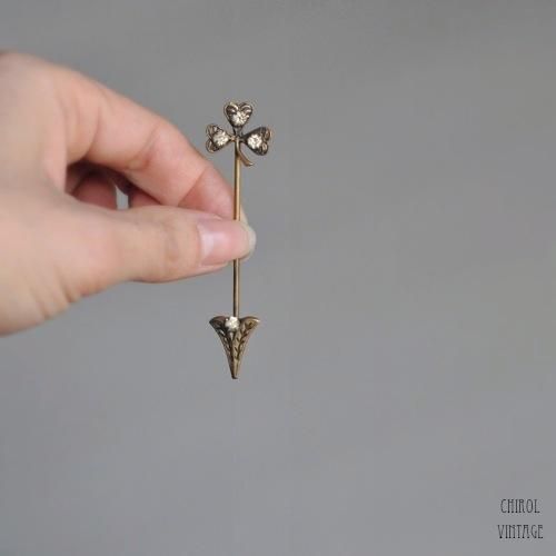 ハートシェイプの小さなクローバがかわいい、アローシェイプのハットピン。