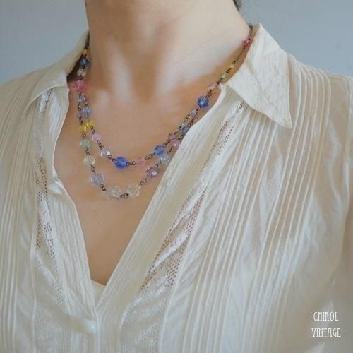 さわやかなパステルカラーのグラスビーズがかわいい、2連のチェコビーズネックレス。