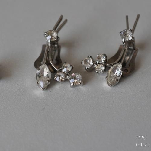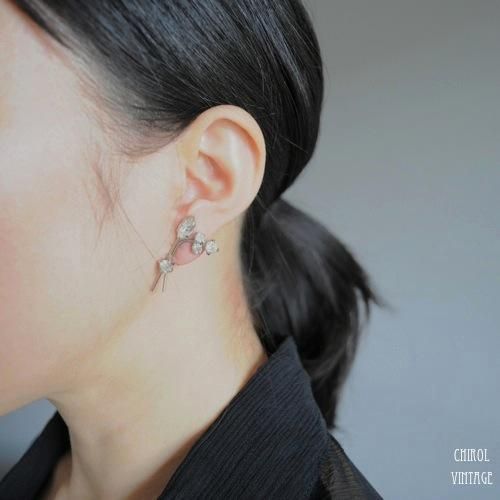すっきりしたデザインのブーケがかわいい、クリアビジューのクリップイヤリング。