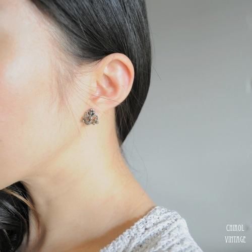 耳たぶに収まる小ぶりなトライアングルにクラスターされたデザインも、バランス良く程よいボリュームです。