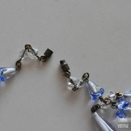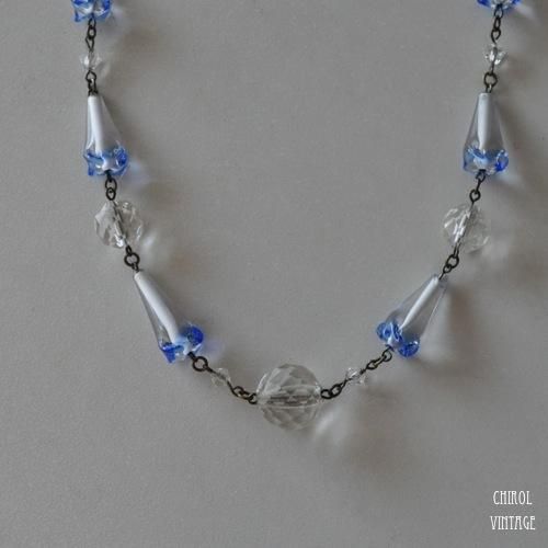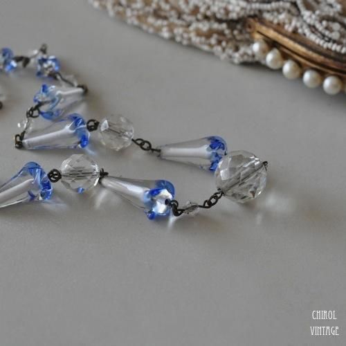 アールデコ クリアブルー アートグラスネックレス