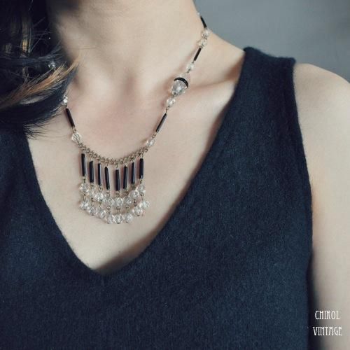トップのフリンジが存在感のある、個性的なデザインがスペシャルなチェコのネックレス。
