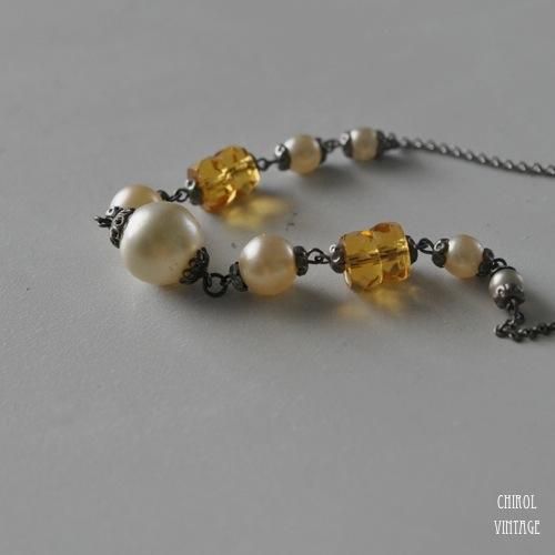 大きめのグラスパールと、アンンバーイエローのグラスビーズのネックレス。