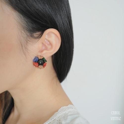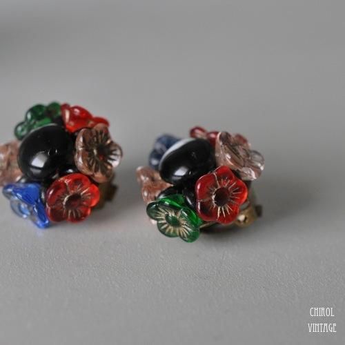 チェコ カラフルフラワーグラス クラスターイヤリング