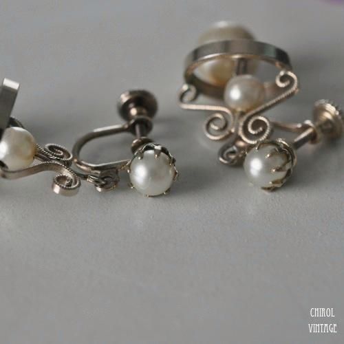 耳たぶ部分には、クロウセットでパールがひと粒。