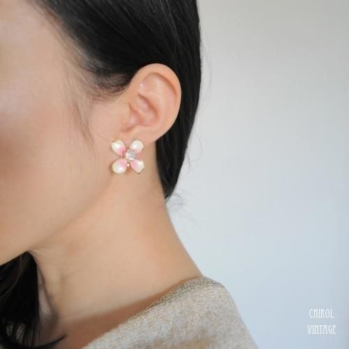 ふわりとグロウするピンクのペタルがかわいい、エナメルフラワーのイヤリング。