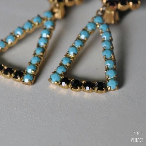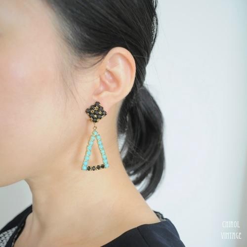 発色の良いフレンチジェットとターコイズのグラスストーンイヤリング。