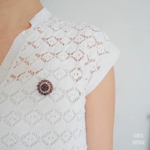 エドウォーディアン アメジストxクリアグラス ミニブローチ