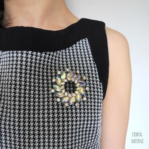 カナダのコスチュームジュエリーブランド、シャーマンの大ぶりなオーロラグラスのブローチ。