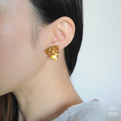 シトリントライアングルビジューイヤリング