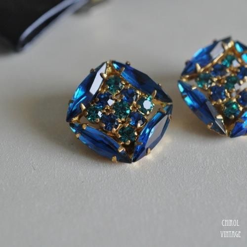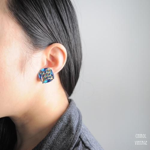 見入ってしまうほどの鮮やかな発色のコバルトブルーが印象的なビジューイヤリング。