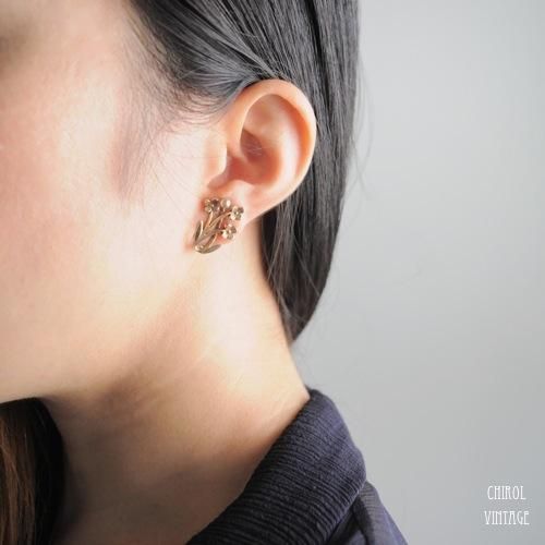 高級感あるリッチなロールドゴールドのフラワーイヤリング。