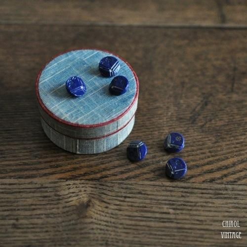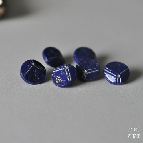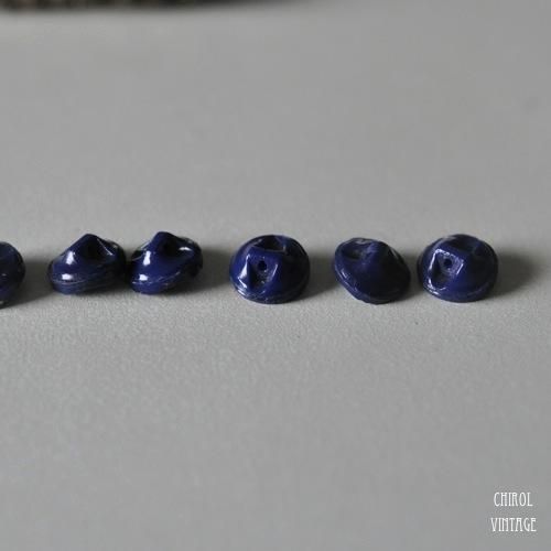 独特なトーンのネイビーカラーがヴィンテージならではの、ミニサイズのグラスボタン6個セット。