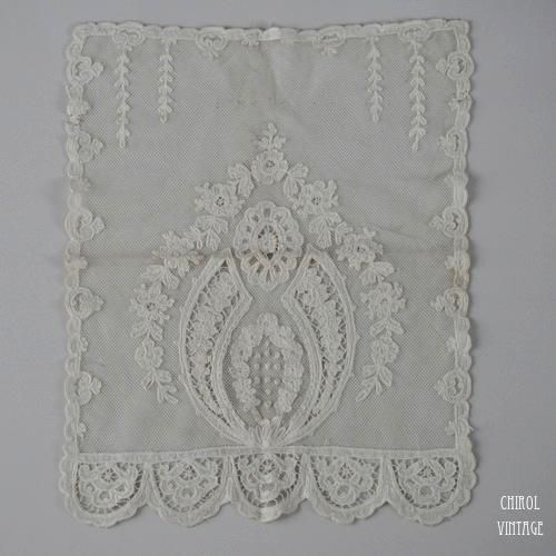 レースとエンブロイダリーの細やかなハンドワークが美しい、アンティークのクロス。