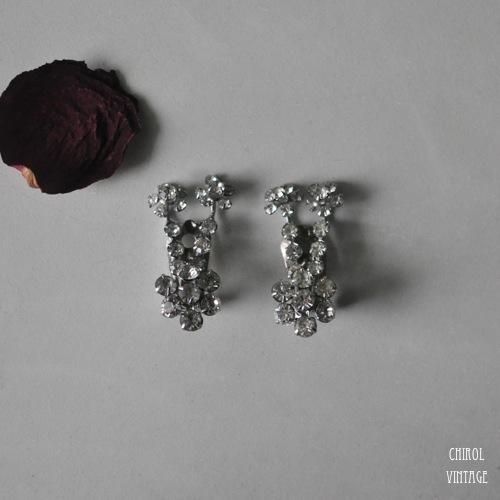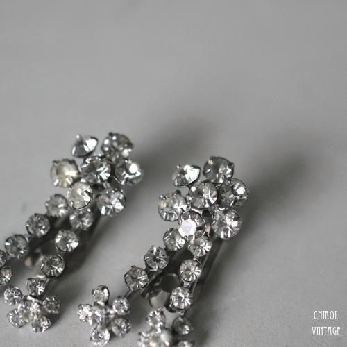 ユニークでデザイン性の高い、クリアラインストーンのフラワーイヤリング。