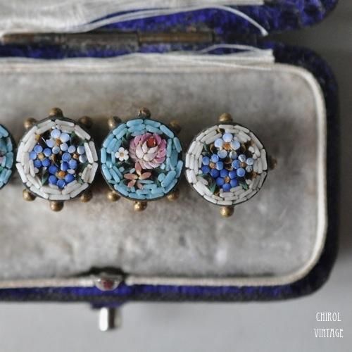 本品は細かい小さなモザイクが使われた、ヴィクトリアン後期からエドウォーディアンにかけての、アンティークな古いマイクロモザイク。