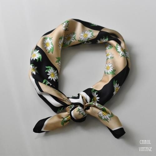 エーデルワイスがいっぱいにプリントされた、シックな印象のヴィンテージスカース。