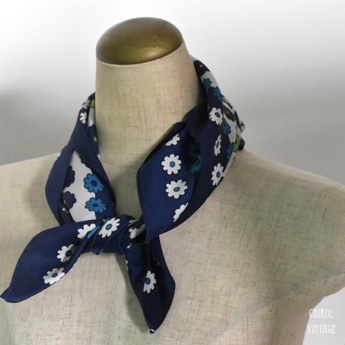 レトロなフラワーがかわいい、スモールサイズのヴィンテージスカーフ。