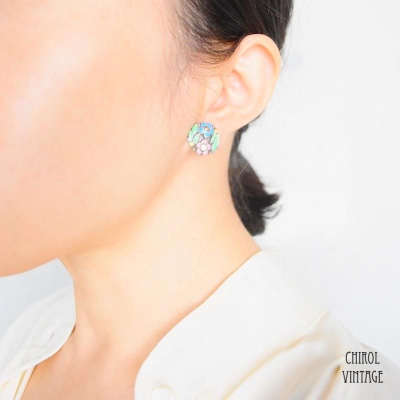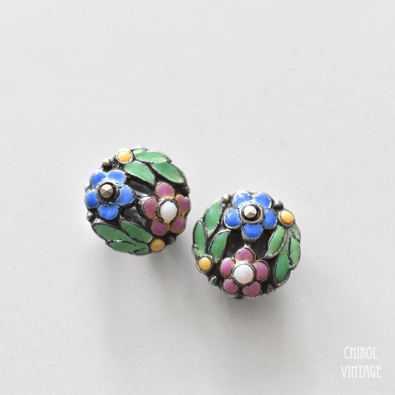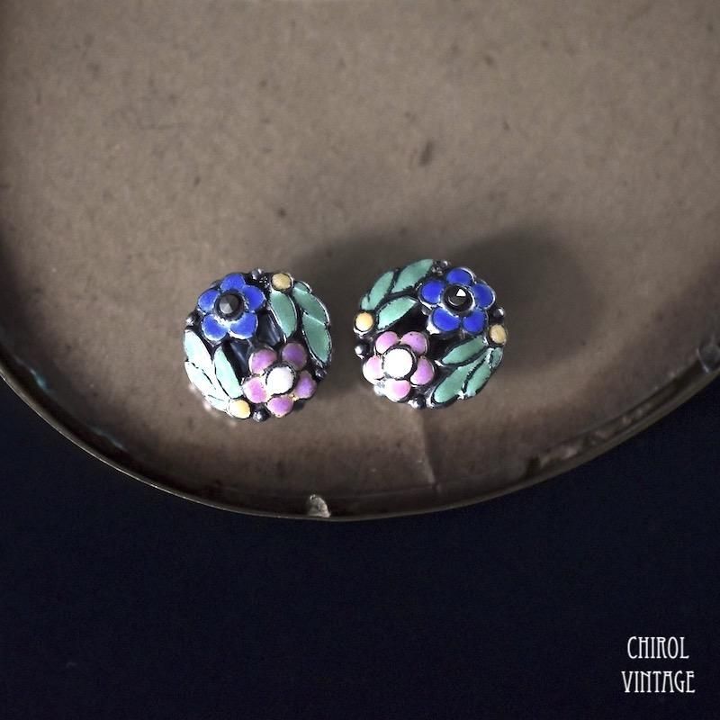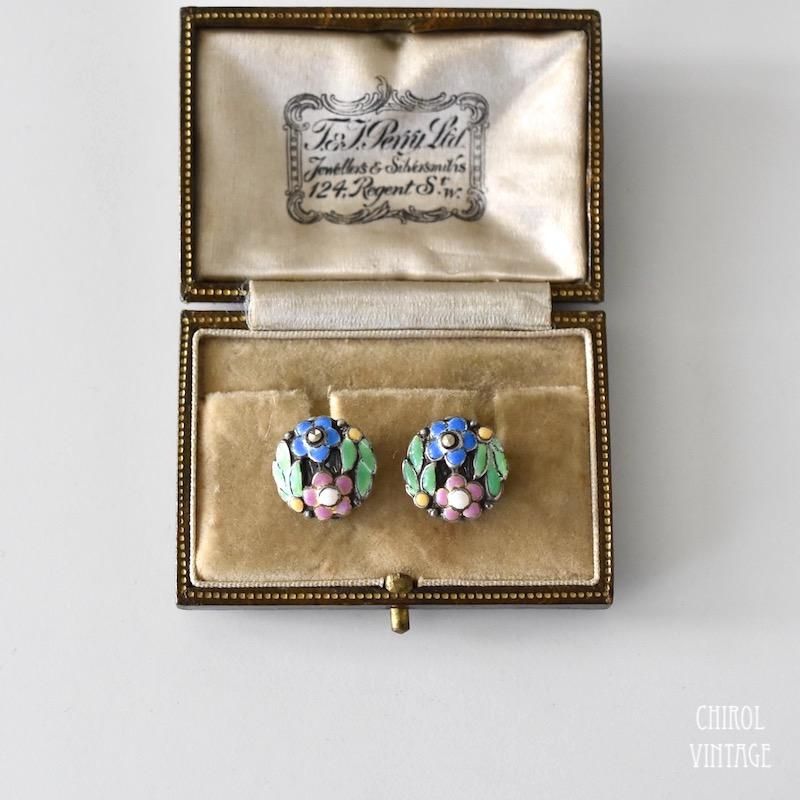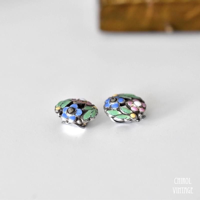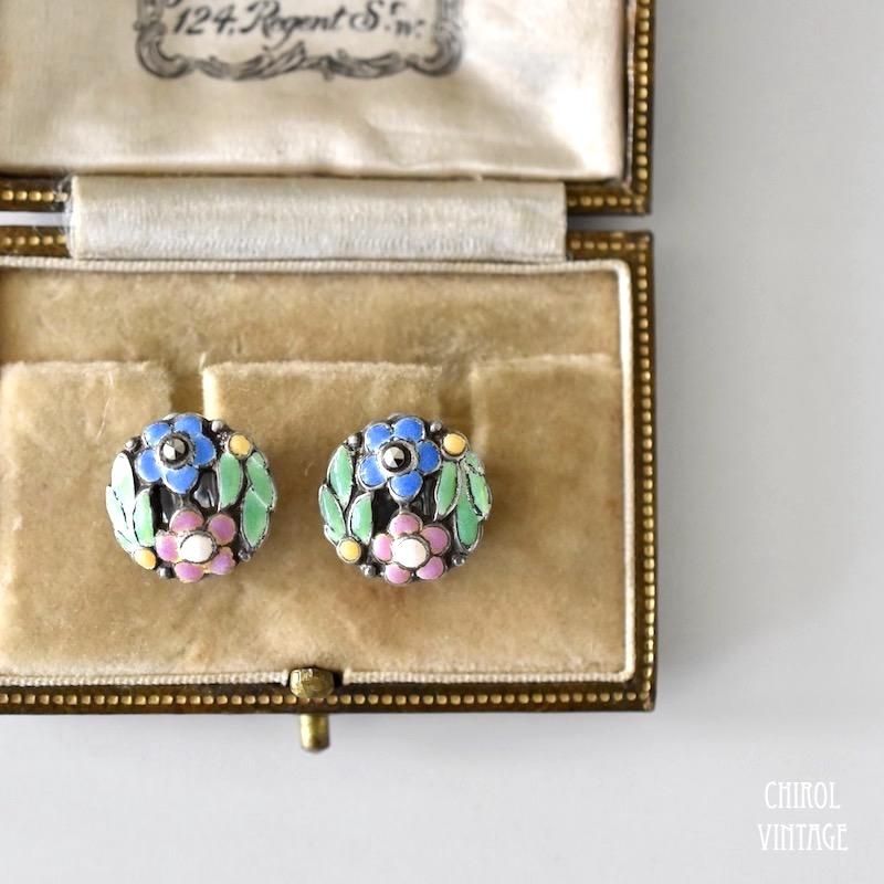 Bernard Instone カラフルエナメルフラワー シルバーイヤリング